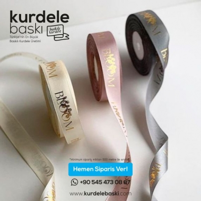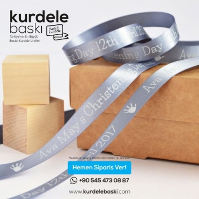 Ürün süsleme ve tanıtımı için kullanılan baskılı kurdeleler farklı renklerde isteğe göre farklı baskı yöntemleri ile üretimi yapılmaktadır. Kurdele renk kartelamızdan renk seçip markanızı bize vektörel olarak atmanız yeterli. Sizin için grafiker arkadaşlarımız siparişiniz sonrası size gerekli çalışmaları hazırlar ve size iletir, tek yapmanız gereken kontrol edip onay vermek. Basit, kurumsal ve hızlı hizmet anlayışımız ile hemen siz de baskılı kurdele siparişi oluşturmak istemez misiniz... Grogren üzeri baskı, saten kurdele baskı, serigraf baskı v.s farklı baskı teknikleri ile farklı tarzlarda markanıza farklı bir stil kazandırmak istiyorsanız hemen bizimle iletişime geçebilirsiniz...